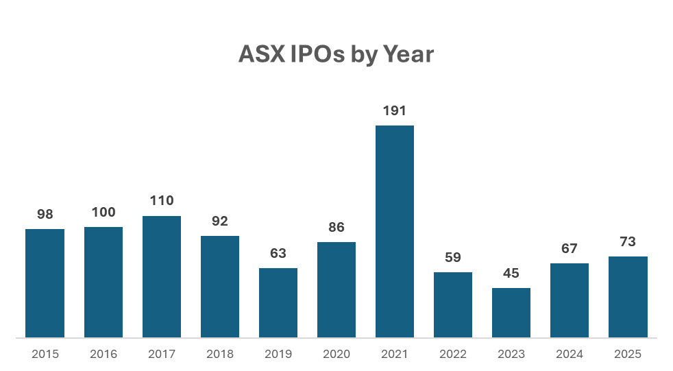 By Q3 of 2025, the ASX had recorded 73 IPOs year-to-date, up from 67 in full-year 2024 and 45 in 2023, a strong signal of returning market confidence. Resources continued to dominate, with investors now favouring mature assets with credible production pathways and disciplined valuations rather than early-stage exploration stories. This revival wasn’t limited to mining, the broader ECM landscape felt more alive, with more companies choosing to raise money publicly rather than waiting on the sidelines.